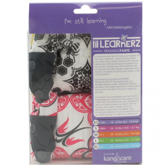 Тренировочные трусики Lil Learnerz изготовлены с применением технологии IMWET TECHNOLOGY ™ - незначительное чувство дискомфорта от влажности гипоаллергенного внутренного слоя поможет малышу понять суть физиологических процессов, а непромокаемый внешний слой защитит от аварий и протечек.